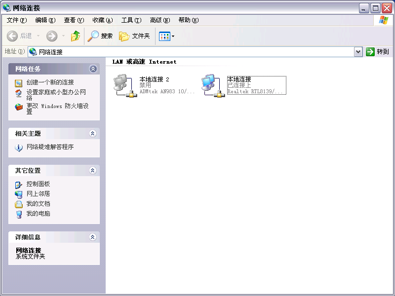 1、 右键单击桌面上的“网上邻居”,选择“属性”,弹出“网络连接”对话框。