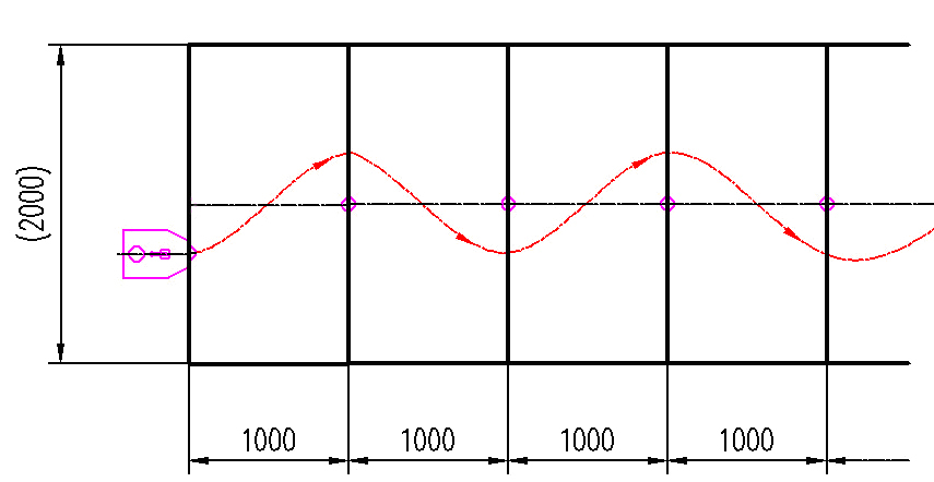 小车在半张标准乒乓球台(长1525mm、宽1370mm)上,绕两个障碍物按“8”字型轨迹运行。障碍物为相距一定距离放置在半张标准乒乓球台中线上的2个直径20mm、长200mm圆棒,见图3。