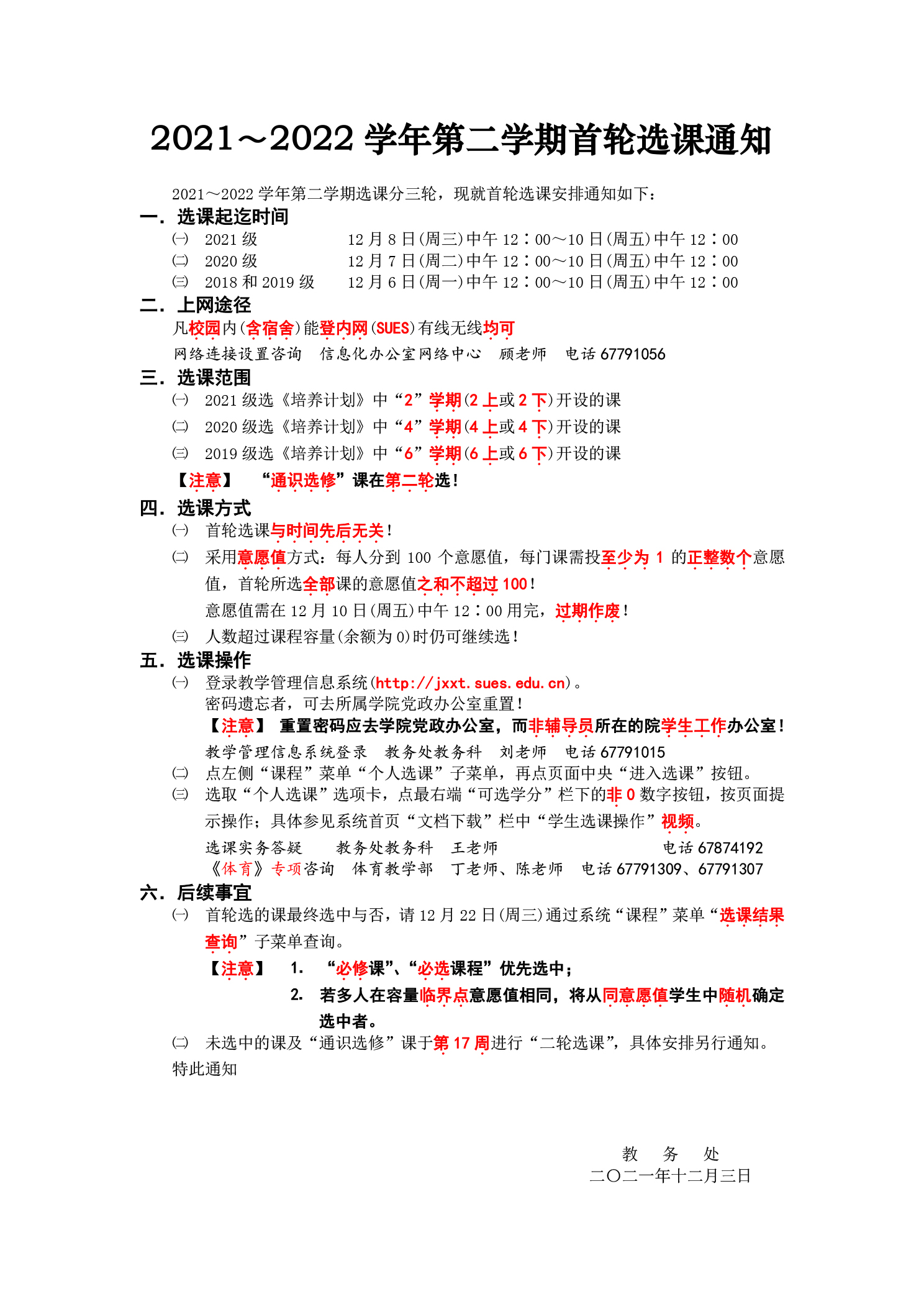 2021~2022学年第二学期首轮选课通知