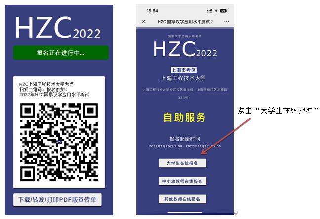 本次报名实行网上报名,请各学院通知学生于9月28日(周三)9:00至10月9日(周日)23:59通过HZC国家汉字应用水平考试(扫描下面报名二维码)进行报名。