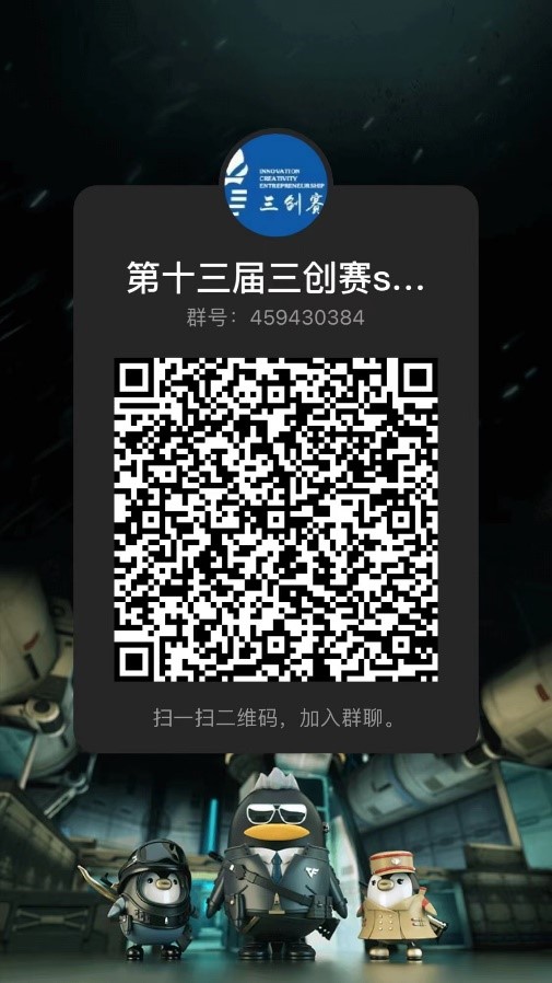 完成报名后请加入校赛QQ群,群号为459430384,入群申请请备注“团队名称+本人姓名”。