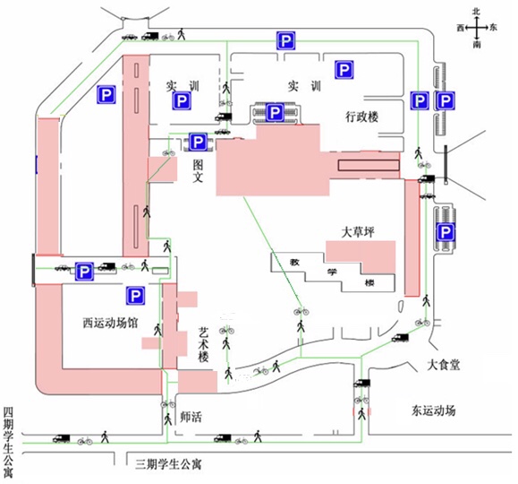 2、 教职工车辆在新生军训期间,一律停在指定停车点(见附件交通指示图)。