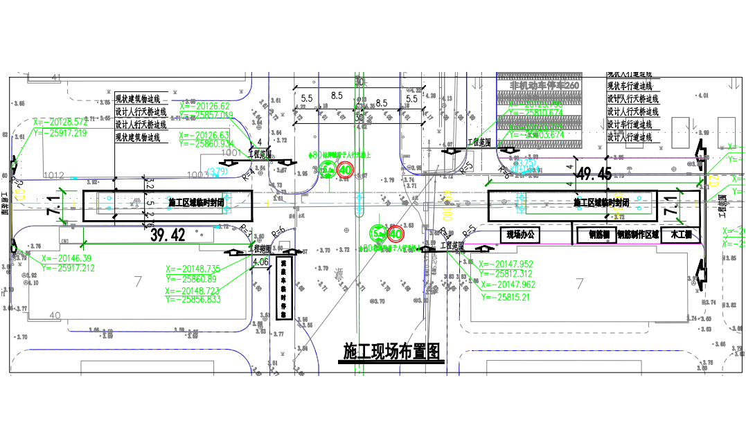 施工期间中东侧教学施工(三期学生公寓)区域工棚搭建长度约55.85米,宽度约8米,围挡高约2米,南侧三期学生公寓路边约1.3米,北侧沿第二食堂路边间距约2.89米;西侧(四期学生公寓)区域工棚搭建长度约55.85米,宽度为约8米,围挡高约2米,届时南侧靠四期学生公寓路边约1.3米,北侧靠沿街商铺约2.33米。三期、四期学生公寓师生来往学校,请注意施工车辆和道路变更,行人和非机动车辆来往请按地面划线和专业相关人员引导指示通过。