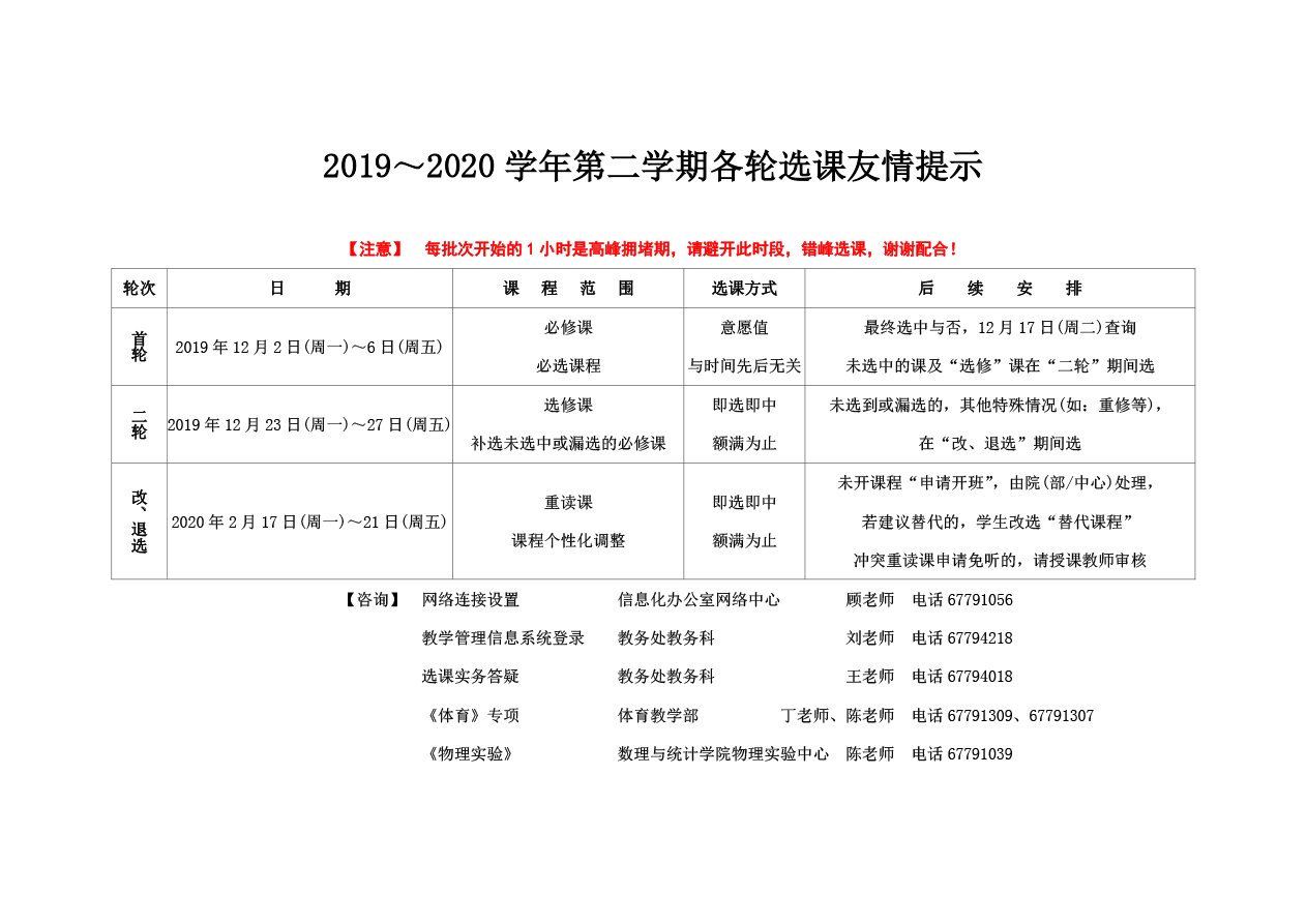 2019~2020学年第二学期首轮选课通知 与 各轮选课友情提示