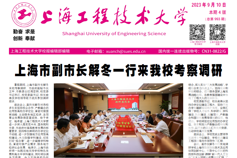 暑假期间,上海市副市长解冬来校考察调研。市政府副秘书长王平、市教委主任周亚明,校党委书记李江,校党委副书记、校长俞涛及学校领导班子成员参加调研座谈。