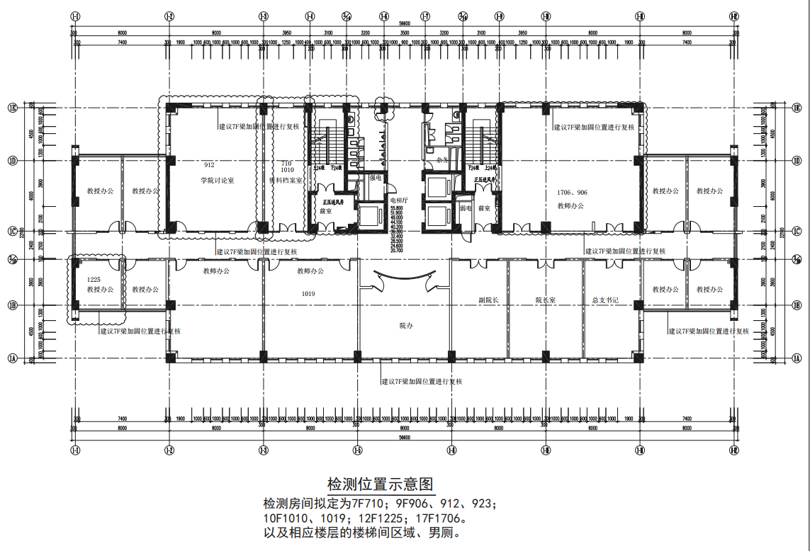 抗震检测期间会对行政楼部分区域的墙、柱、梁进行粉刷凿除,部分将凿除至钢筋进行检测,完成检测后,我处将安排施工单位进行粉刷层等修复工作。
